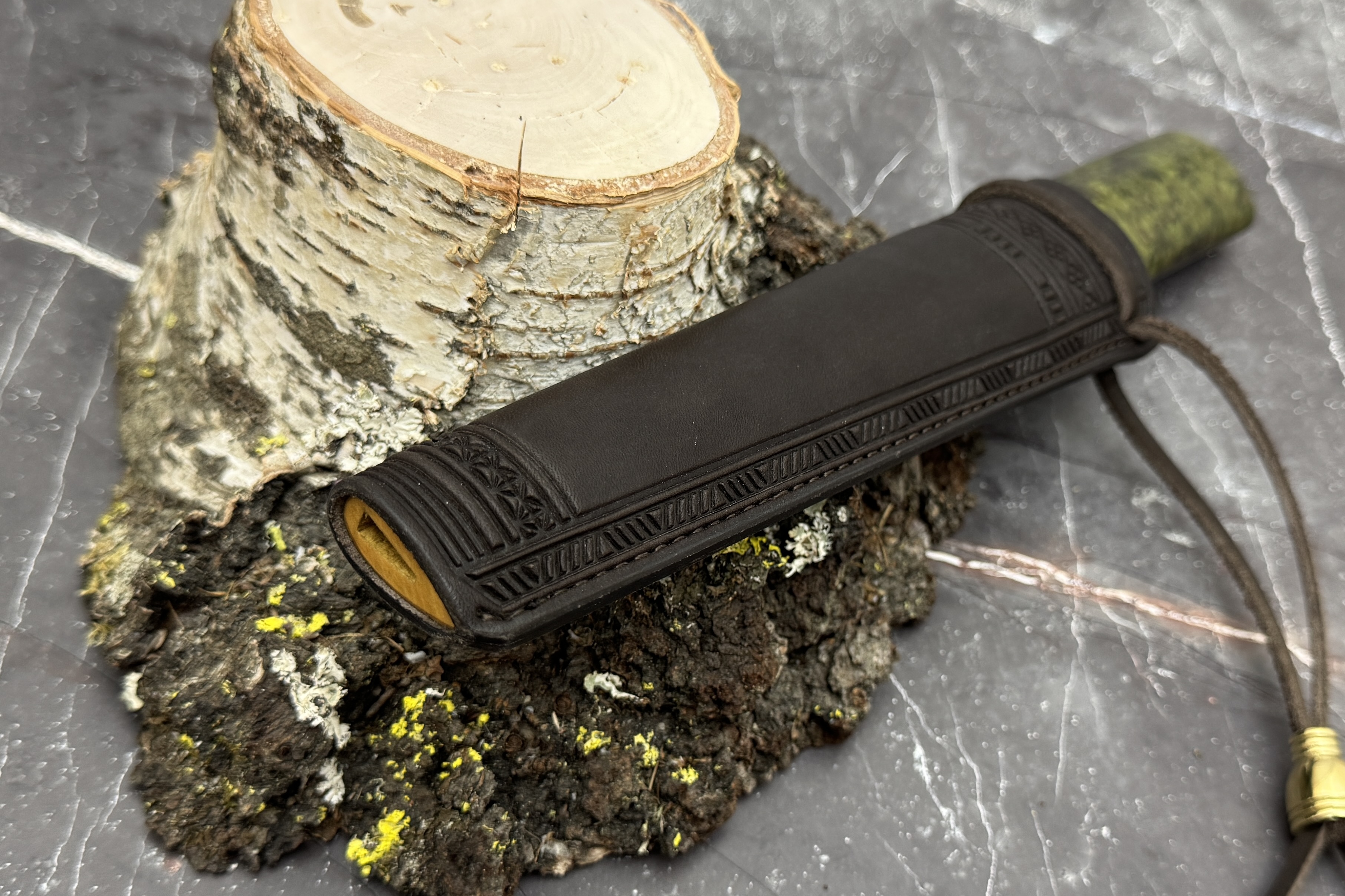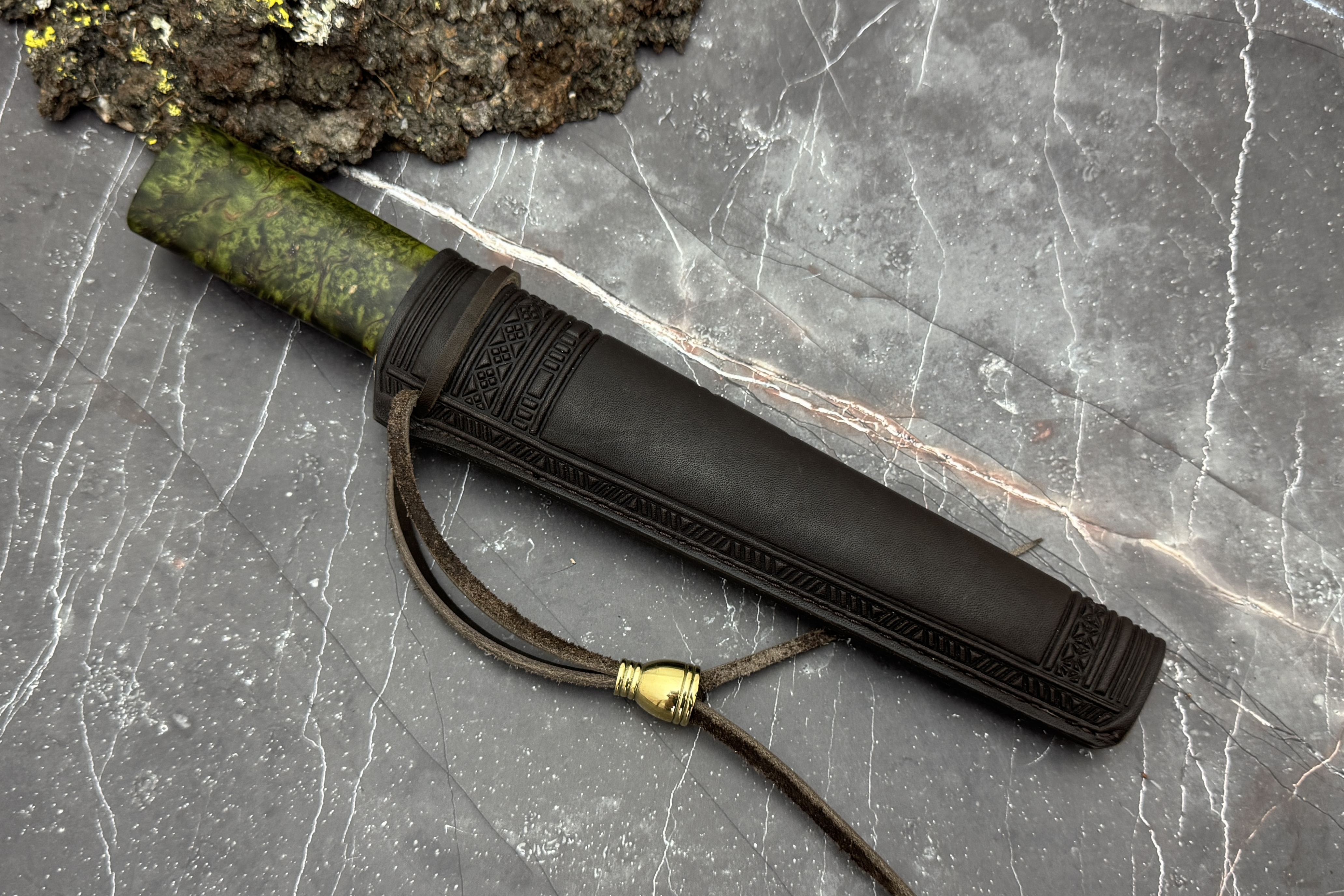 Ножны из премиальной кожи с орнаментом, внутри деревянная вставка!
