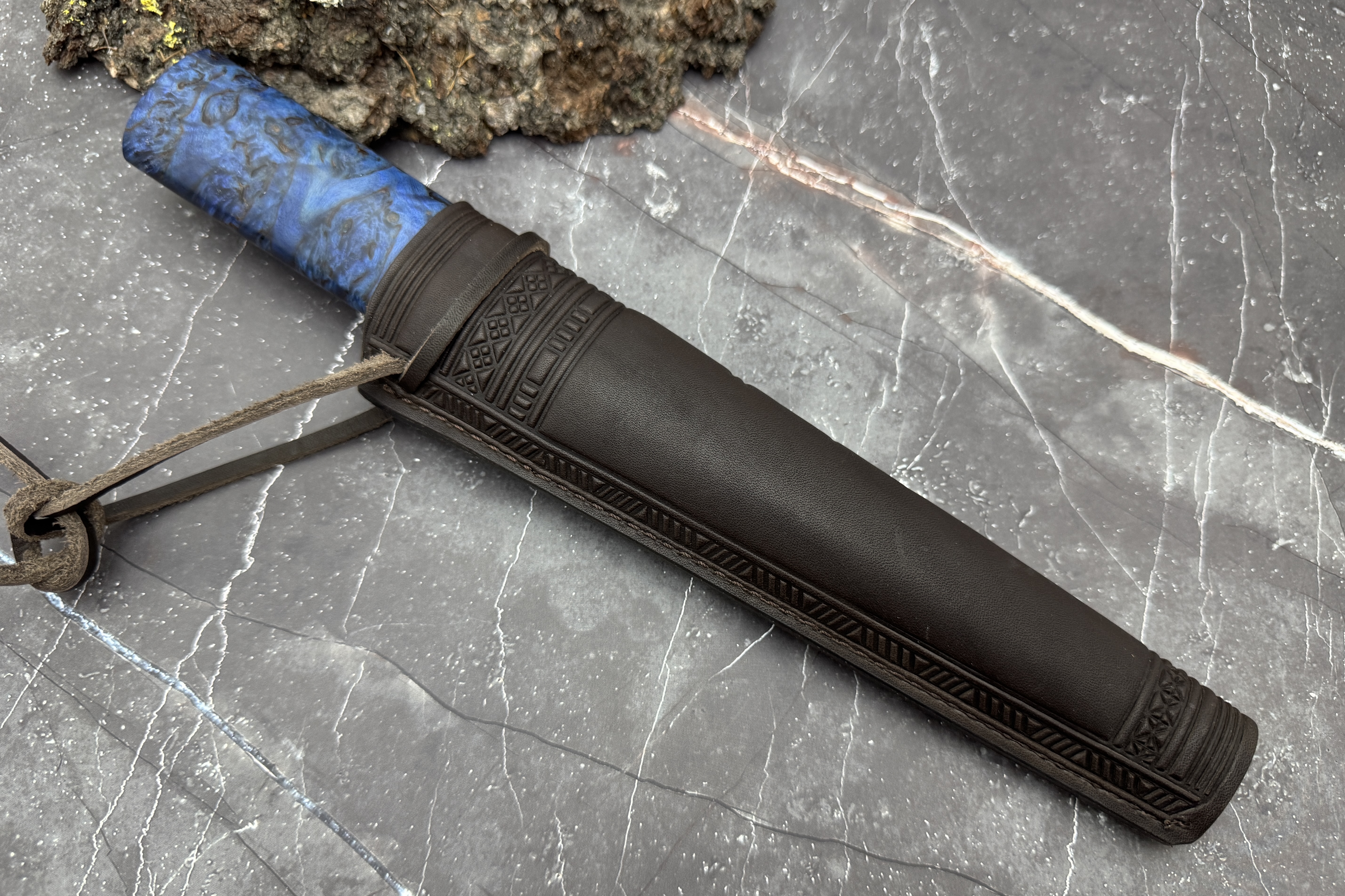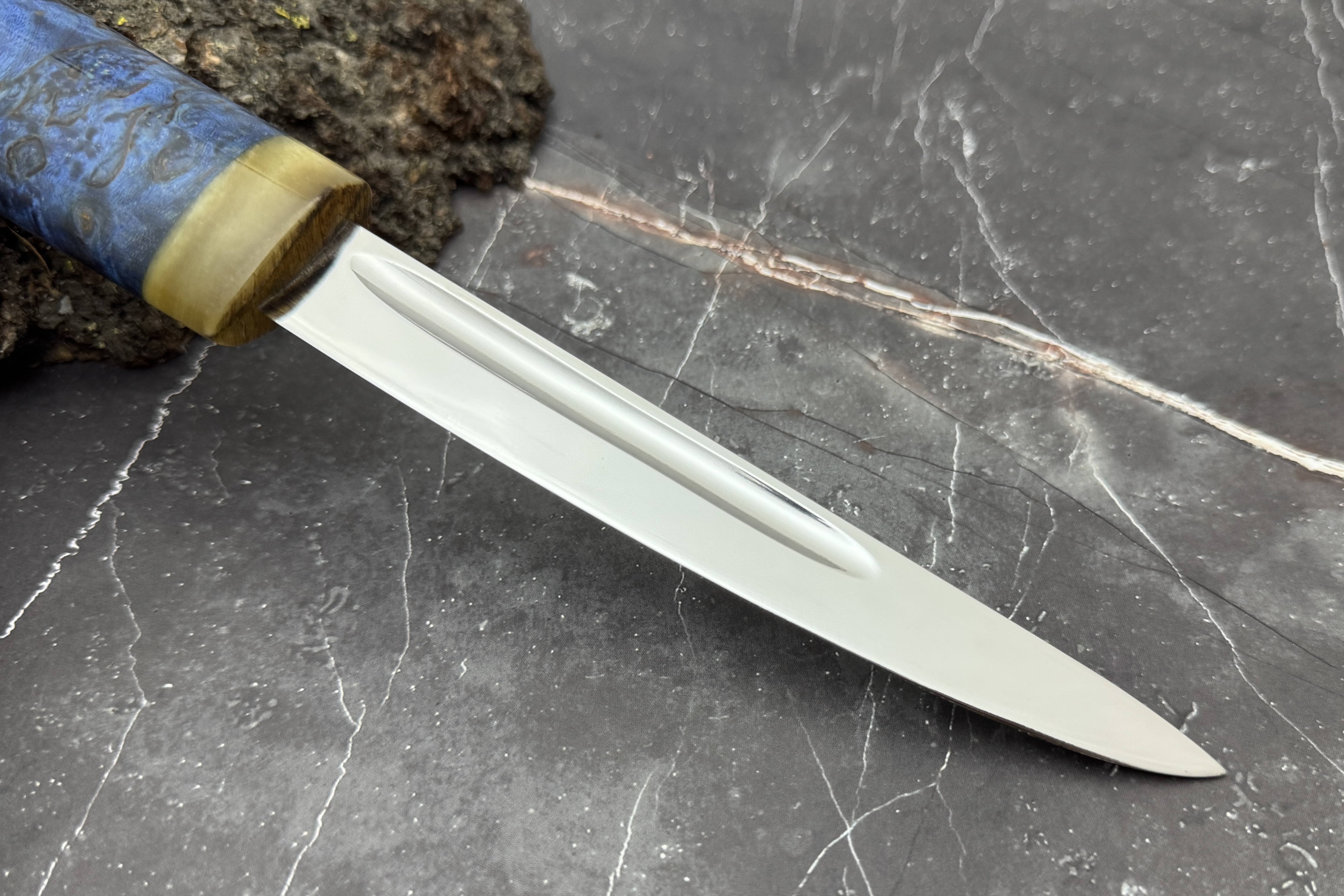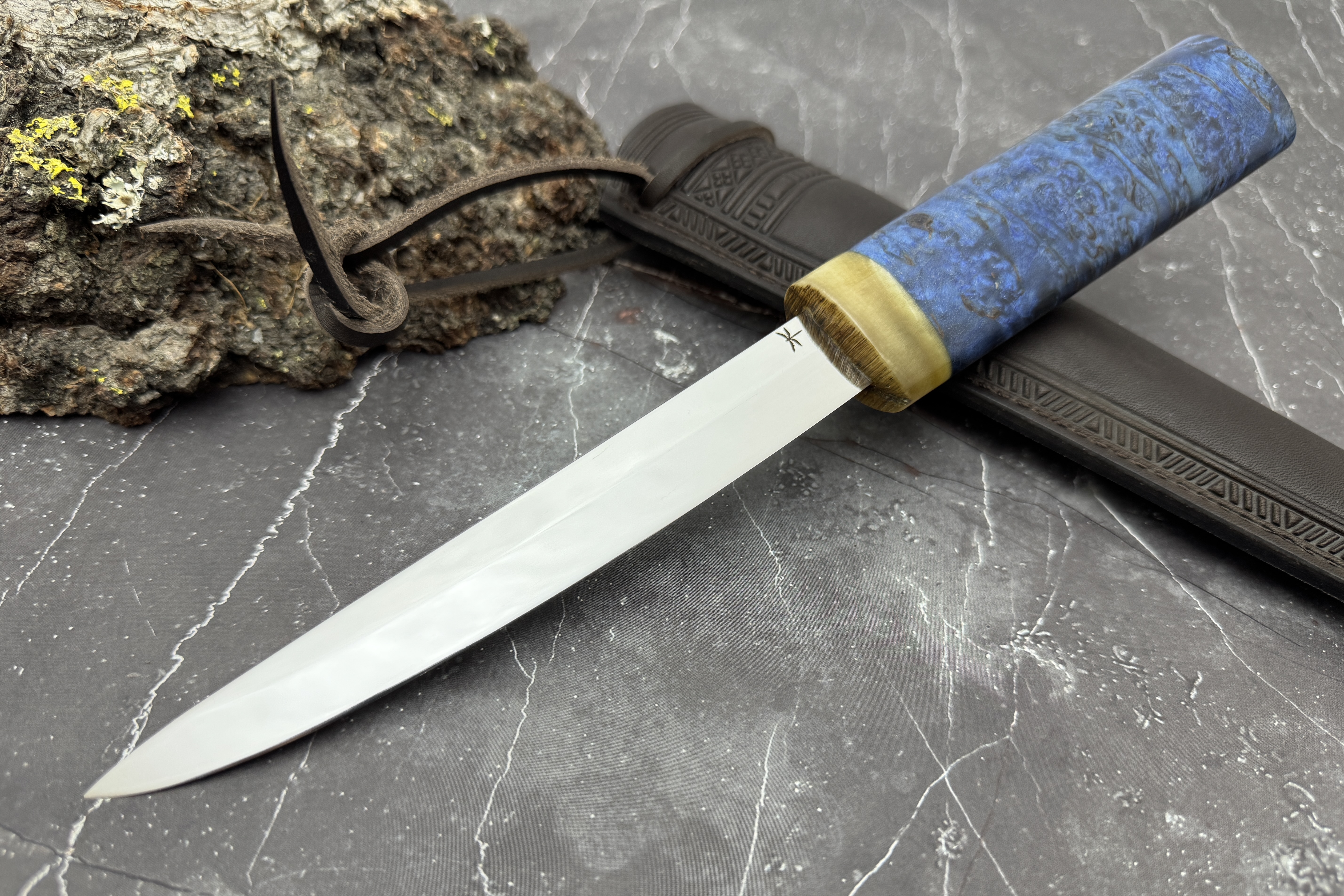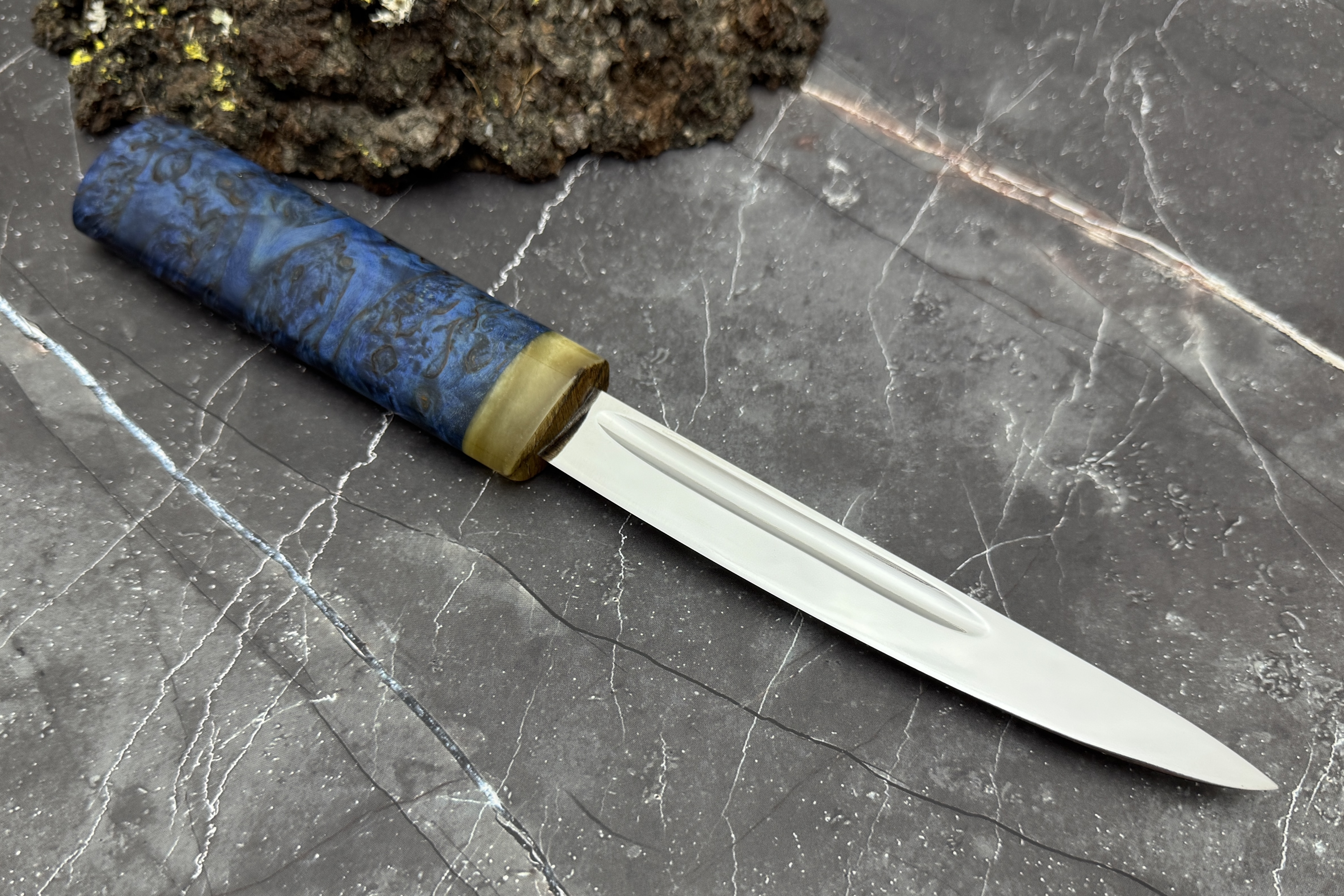 Нож Сындыыс большой 150 (VG-10, стабилизированный кап якутской березы синий, рог чубуку)