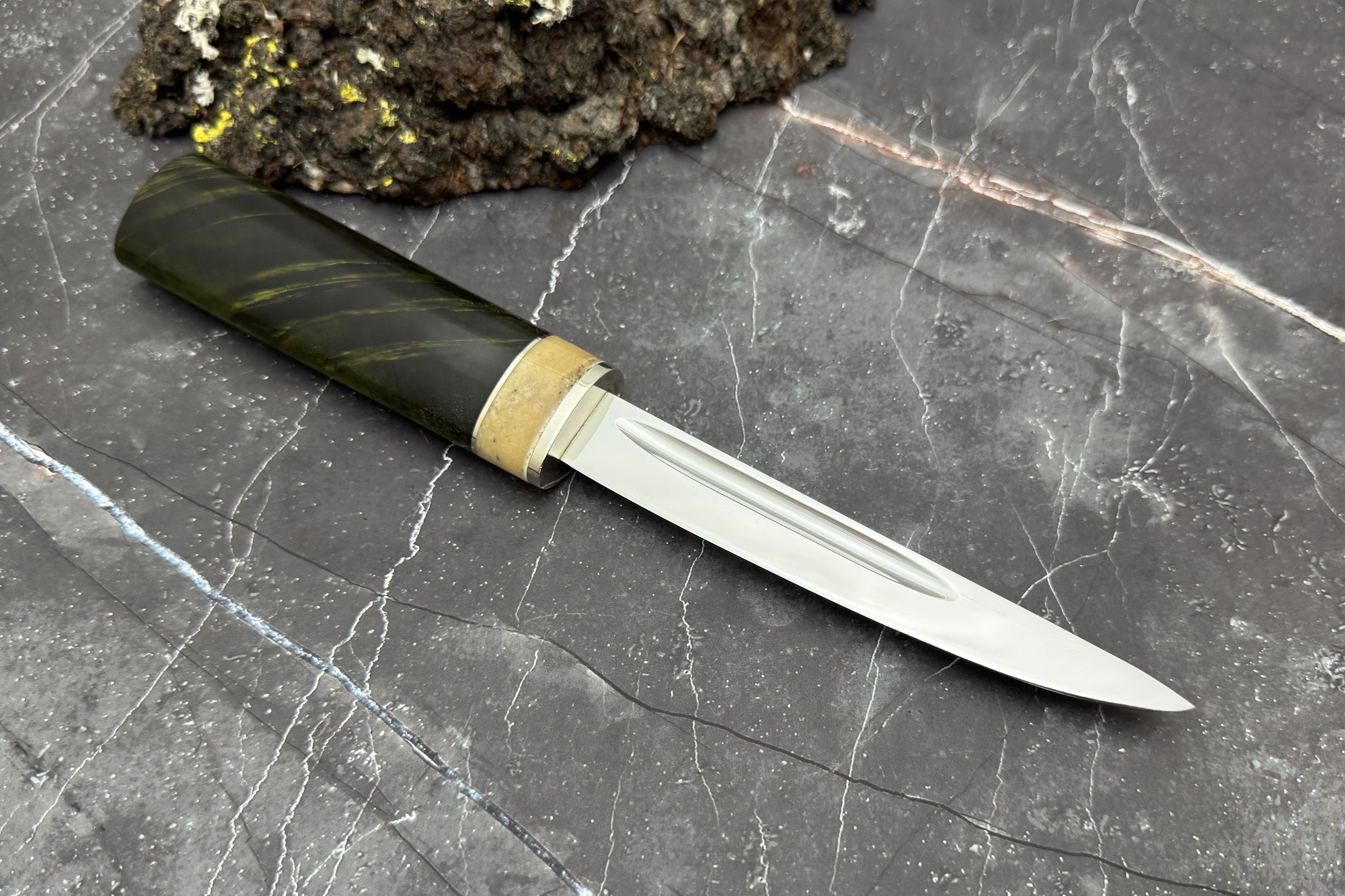 Нож Сындыыс, что в переводе означает метеор или стрекоза. Сам нож реплика инструмента, которым действительно работали якуты с конца XIX, начала XX века.