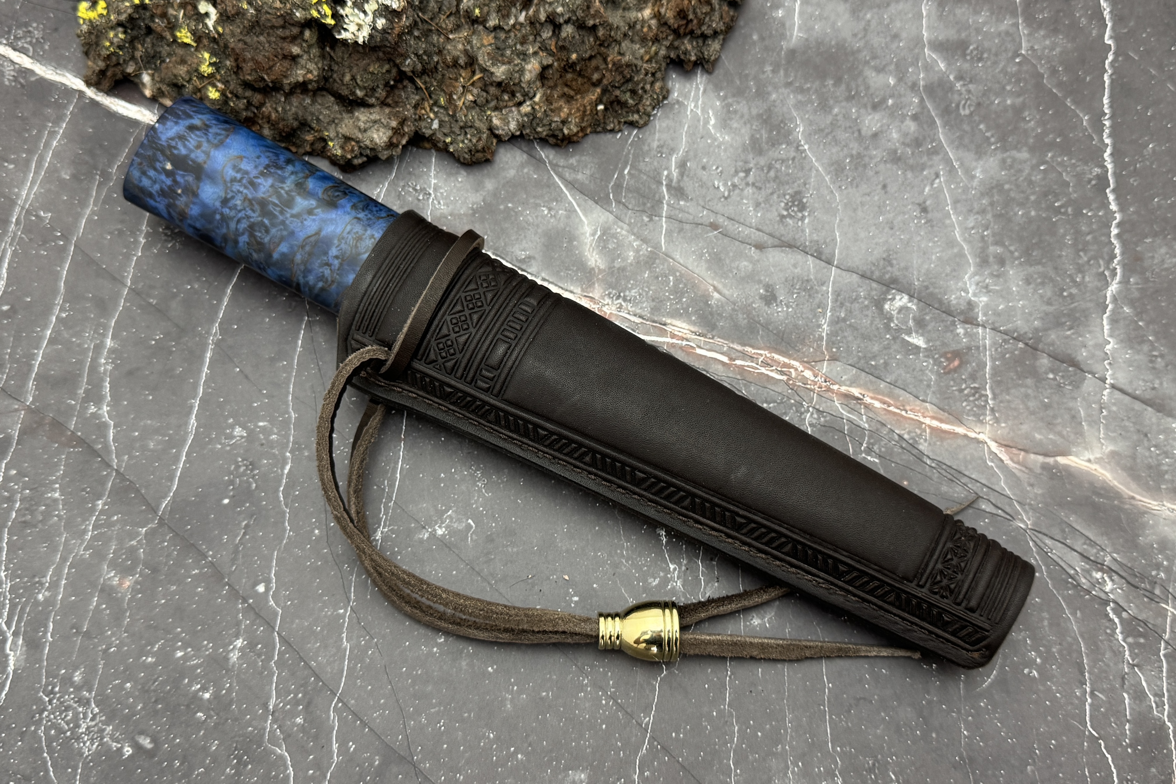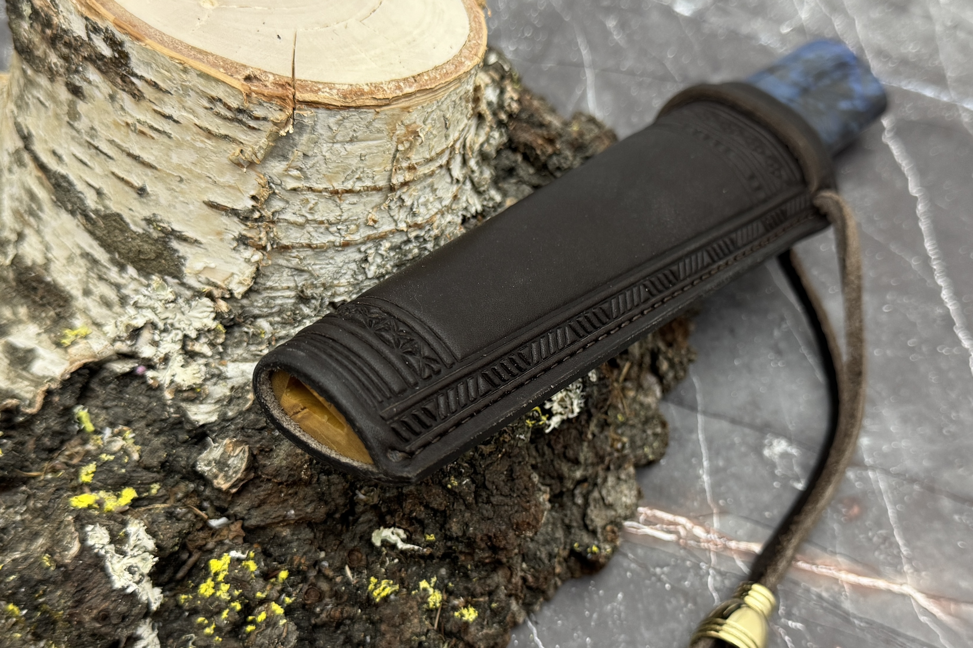 Ножны из премиальной кожи с орнаментом, внутри деревянная вставка!