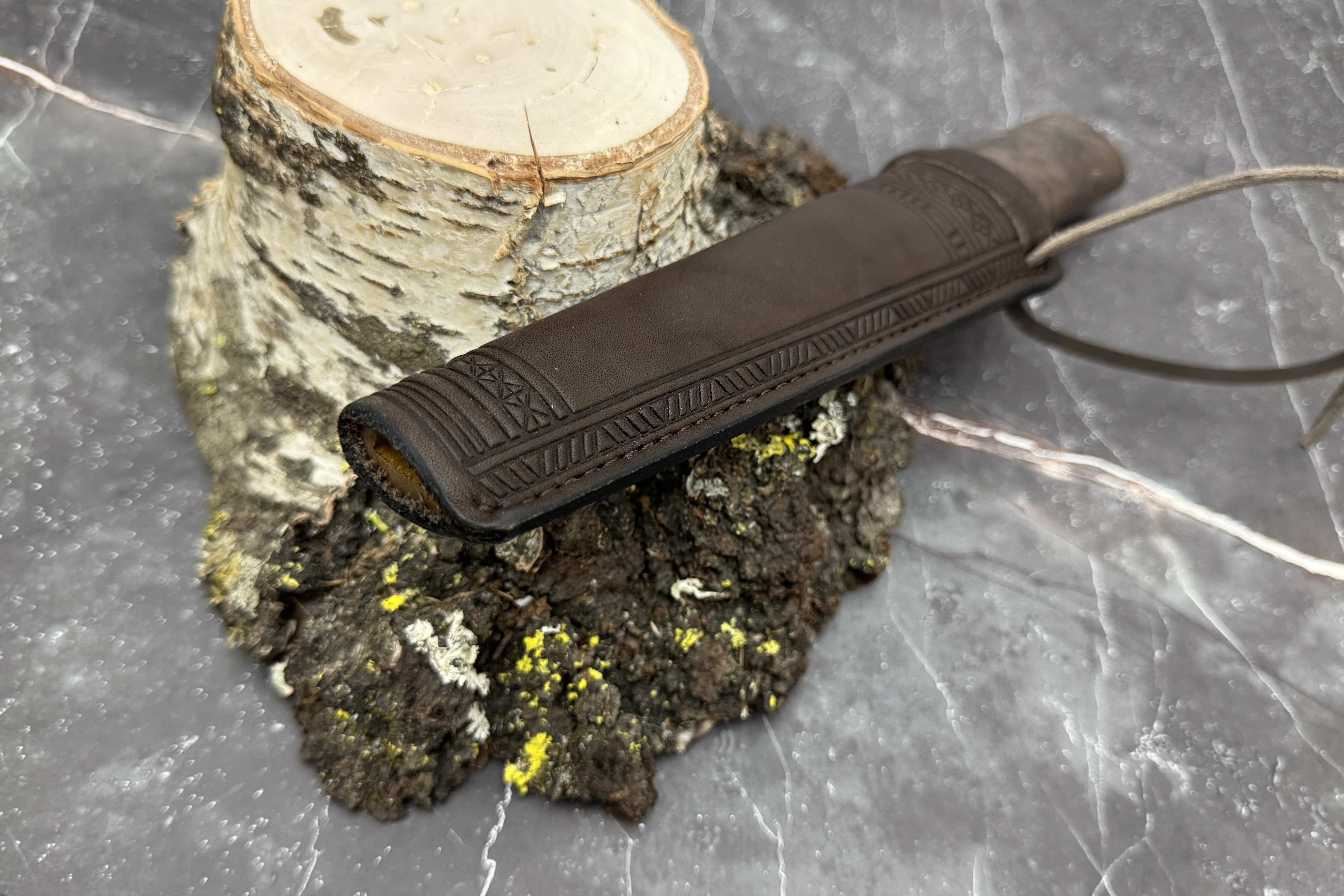Ножны из премиальной кожи с орнаментом, внутри деревянная вставка!